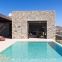 The exceptional architectural design of the property includes 2 indoor living rooms and 4 outdoor lounge areas spread around and oriented differently along the impressive patio. Natural materials, such as stone and wood, dominating both interior and exterior, minimal design, and soft tones create a sense of tranquillity and balance, gently absorbing and diffusing light throughout the day. The luxurious, subtly decorated interior generates a light atmosphere, and blends harmoniously with its natural environment, creating comfortable, autonomous spaces in a prominent location. *The 2 living rooms and 4 lounge areas are included in the 10 bedroom villa with private swimming pool. Guests staying in the 5-bedroom villas have access to 1 indoor living room and 2 lounge areas on the terrace.